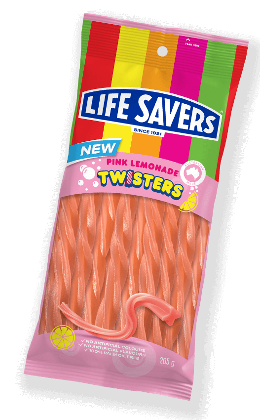 Fun comes in all shapes - this one comes with a TWIST and in pink! The fizziness of these soft pink lemonade flavoured twisters is irresistible and will leave you wanting more.